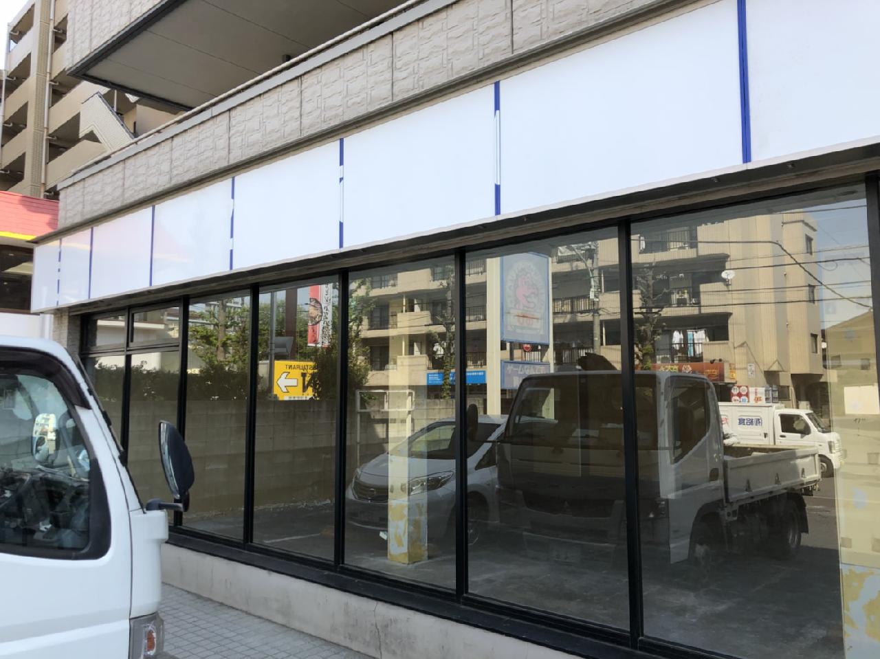 新規店舗サイン工事 入口上部表示面:アルミ複合板3mm+インクジェット出力シート