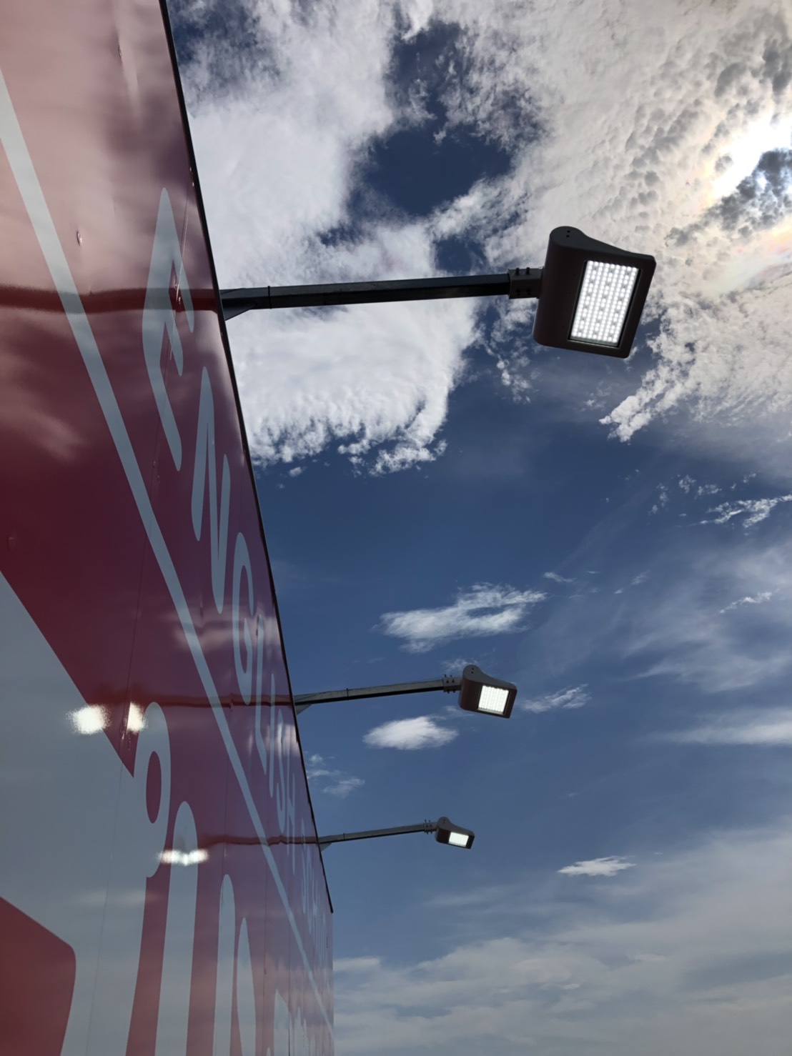 既存の屋上看板にパネルサインの上貼りを行いました。