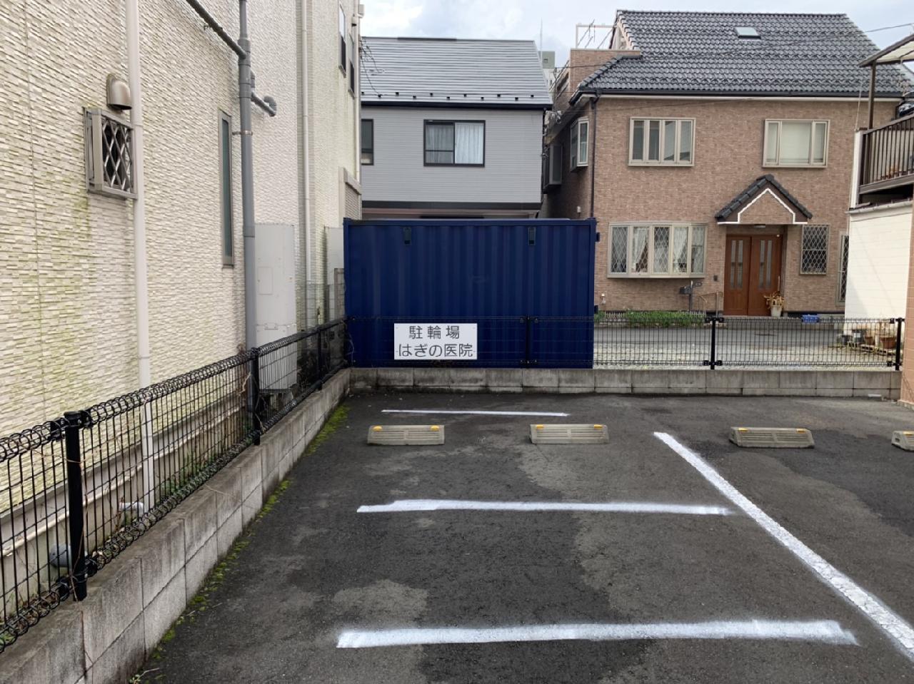 フェンス部にパネル看板、既存の袖看板を撤去して新設しています。